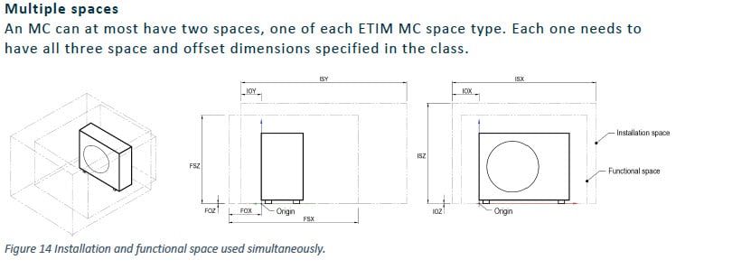 Based on market needs, ETIM MC now introduces two types of spaces in the standard: Installation space and Functional space.