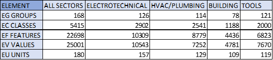 Also there have been 690 new classes added, most of these originating from the integration of the proficl@ss standard in the new sector for tools, hardware and site supplies in ETIM.